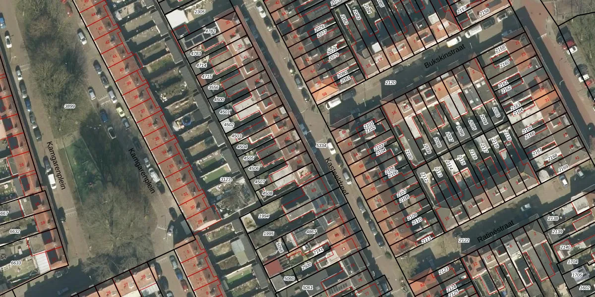 Het perceel waarop Kasteeldreef 57 staat heeft een oppervlakte van 96 m². Dit is een klein perceel. De perceeloppervlakte wordt geregistreerd door het Kadaster. Gedetailleerde informatie over de maten van dit perceel kunt u vinden in het rapport Kadastrale kaart met maatvoering van Kasteeldreef 57.
