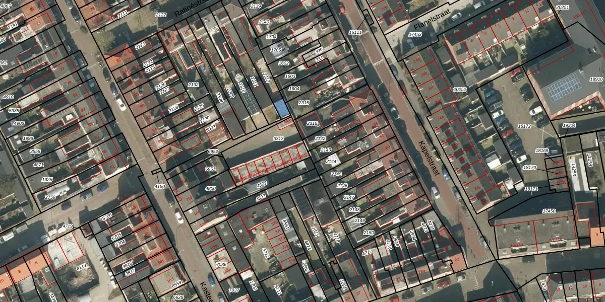 Het adres is gelegen op perceel 6313 in de sectie O en de kadastrale gemeente Tilburg. De kadastrale aanduiding is aldus TBG01-O-6313. Het perceel is kleiner dan gemiddeld in Tilburg. Het perceel is 357 m² groot, terwijl het gemiddelde ligt op 1265,36 m². De grootste perceeloppervlakte in de kadastrale gemeente is 87,4 ha. De kleinste oppervlakte bedraagt 0 m². Op het perceel liggen in totaal 10 adressen. In de Basisregistratie Kadaster (BRK) werden de grenzen van het perceel geregistreerd op 12-11-2015.