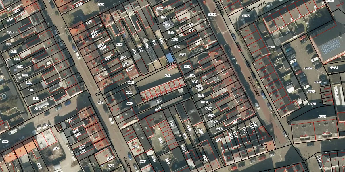 Het adres is gelegen op perceel 6313 in de sectie O en de kadastrale gemeente Tilburg. De kadastrale aanduiding is aldus TBG01-O-6313. Het perceel is kleiner dan gemiddeld in Tilburg. Het perceel is 357 m² groot, terwijl het gemiddelde ligt op 1265,37 m². De grootste perceeloppervlakte in de kadastrale gemeente is 87,4 ha. De kleinste oppervlakte bedraagt 0 m². Op het perceel liggen in totaal 10 adressen. De laatste wijziging in het de Basisregistratie Kadaster (BRK) was op 12-11-2015.