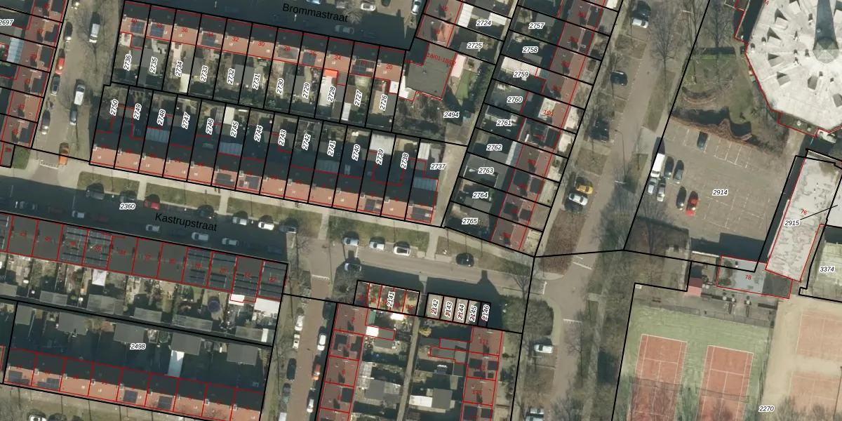 Kastrupstraat 1 is gelegen op kadastraal perceel TBG01AC2737. Deze kadastrale aanduiding is uniek en wordt gebruikt door het Kadaster om eigendomsrechten en andere zakelijke rechten vast te leggen. Het perceel maakt onderdeel uit van de kadastrale gemeente Tilburg.
