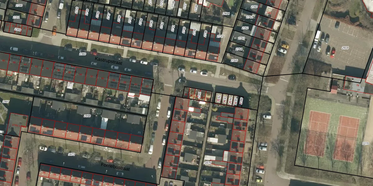 Kastrupstraat 20 is gelegen op kadastraal perceel TBG01AC2141. Deze kadastrale aanduiding is uniek en wordt gebruikt door het Kadaster om eigendomsrechten en andere zakelijke rechten vast te leggen. Het perceel maakt onderdeel uit van de kadastrale gemeente Tilburg.