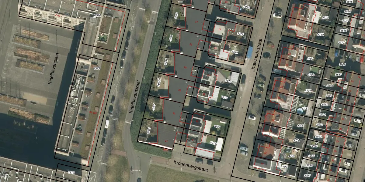 Katwoudestraat 31 is gelegen op kadastraal perceel TBG01AF5906. Deze kadastrale aanduiding is uniek en wordt gebruikt door het Kadaster om eigendomsrechten en andere zakelijke rechten vast te leggen. Het perceel maakt onderdeel uit van de kadastrale gemeente Tilburg.