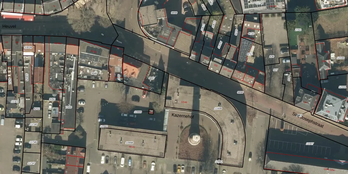 Het perceel waarop Kazernehof 55 staat heeft een oppervlakte van 952 m². Dit is een groot perceel. De perceeloppervlakte wordt geregistreerd door het Kadaster. Gedetailleerde informatie over de maten van dit perceel kunt u vinden in het rapport Kadastrale kaart met maatvoering van Kazernehof 55.