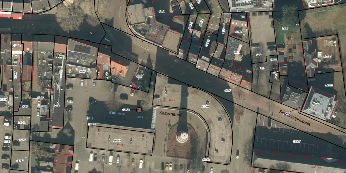 Het perceel waarop Kazernehof 56 staat heeft een oppervlakte van 952 m². Dit is een groot perceel. De perceeloppervlakte wordt geregistreerd door het Kadaster. Gedetailleerde informatie over de maten van dit perceel kunt u vinden in het rapport Kadastrale kaart met maatvoering van Kazernehof 56.