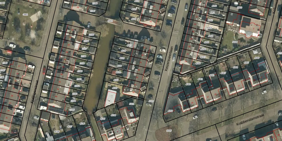 Keizersveerlaan 33 is gelegen op kadastraal perceel TBG01AF4030. Deze kadastrale aanduiding is uniek en wordt gebruikt door het Kadaster om eigendomsrechten en andere zakelijke rechten vast te leggen. Het perceel maakt onderdeel uit van de kadastrale gemeente Tilburg.