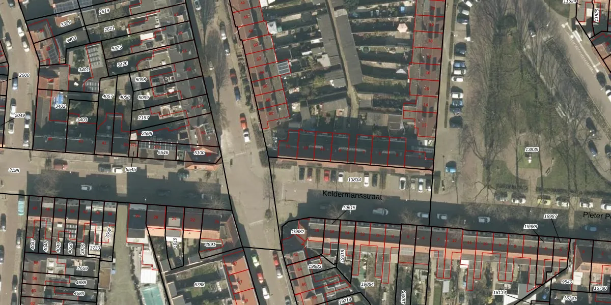 Keldermansstraat 13 is gelegen op kadastraal perceel TBG01N13836. Deze kadastrale aanduiding is uniek en wordt gebruikt door het Kadaster om eigendomsrechten en andere zakelijke rechten vast te leggen. Het perceel maakt onderdeel uit van de kadastrale gemeente Tilburg.
