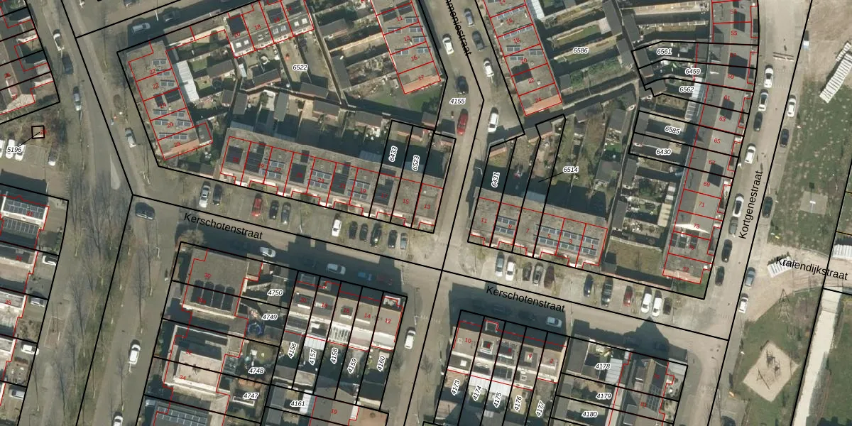 Kerschotenstraat 13 is gelegen op kadastraal perceel TBG01AF6522. Deze kadastrale aanduiding is uniek en wordt gebruikt door het Kadaster om eigendomsrechten en andere zakelijke rechten vast te leggen. Het perceel maakt onderdeel uit van de kadastrale gemeente Tilburg.