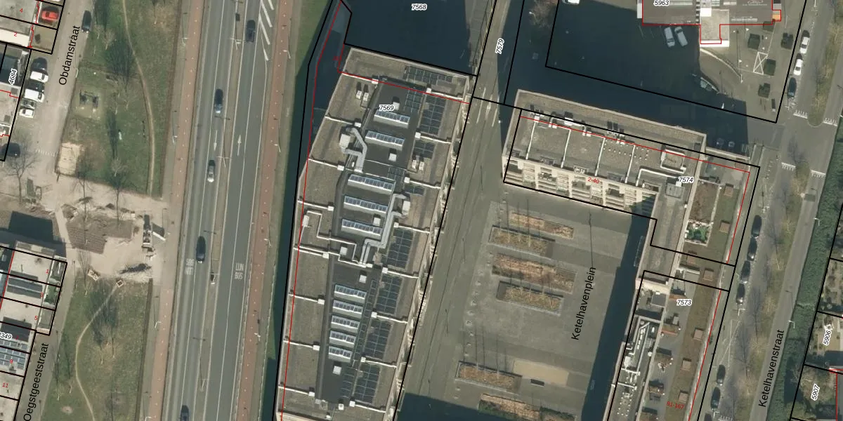 Het perceel waarop Ketelhavenplein 183 staat heeft een oppervlakte van 4210 m². Dit is een zeer groot perceel. De perceeloppervlakte wordt geregistreerd door het Kadaster. Gedetailleerde informatie over de maten van dit perceel kunt u vinden in het rapport Kadastrale kaart met maatvoering van Ketelhavenplein 183.