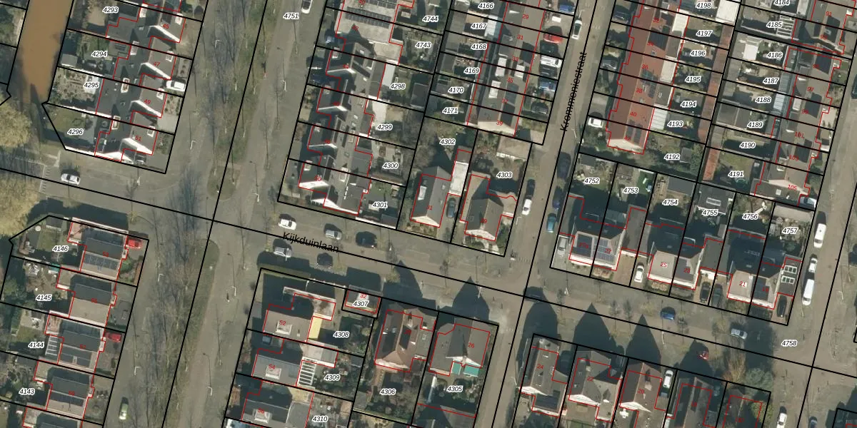 Het perceel waarop Kijkduinlaan 31 staat heeft een oppervlakte van 357 m². Dit is een groot perceel. De perceeloppervlakte wordt geregistreerd door het Kadaster. Gedetailleerde informatie over de maten van dit perceel kunt u vinden in het rapport Kadastrale kaart met maatvoering van Kijkduinlaan 31.