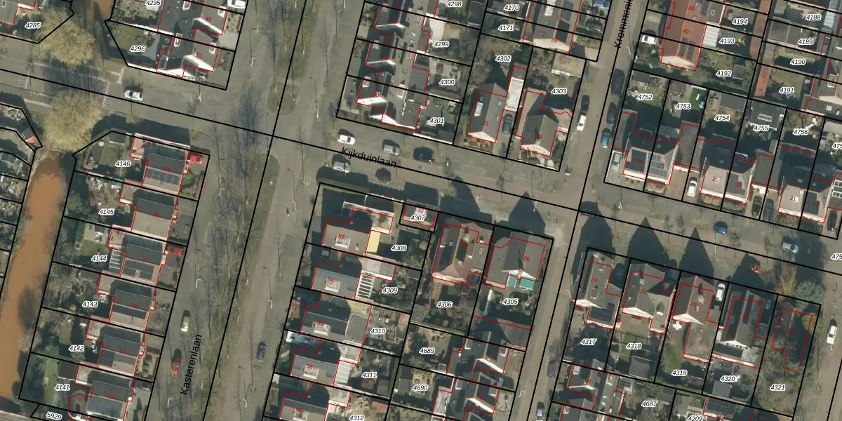 Het perceel waarop Kijkduinlaan 32 staat heeft een oppervlakte van 43 m². Dit is een klein perceel. De perceeloppervlakte wordt geregistreerd door het Kadaster. Gedetailleerde informatie over de maten van dit perceel kunt u vinden in het rapport Kadastrale kaart met maatvoering van Kijkduinlaan 32.