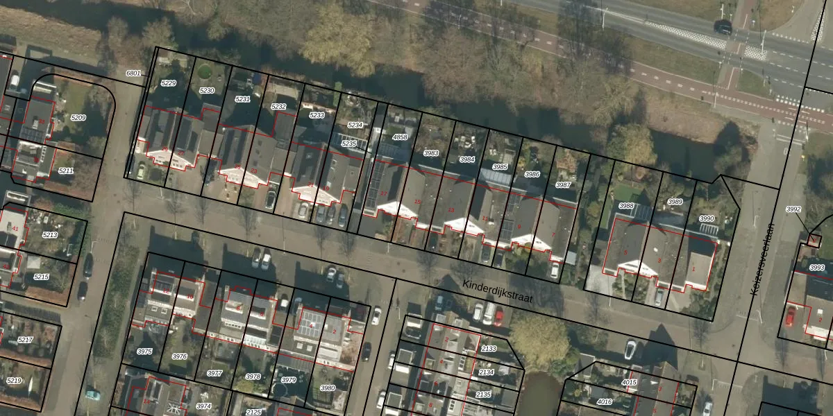 Kinderdijkstraat 15 is gelegen op kadastraal perceel TBG01AF3983. Deze kadastrale aanduiding is uniek en wordt gebruikt door het Kadaster om eigendomsrechten en andere zakelijke rechten vast te leggen. Het perceel maakt onderdeel uit van de kadastrale gemeente Tilburg.