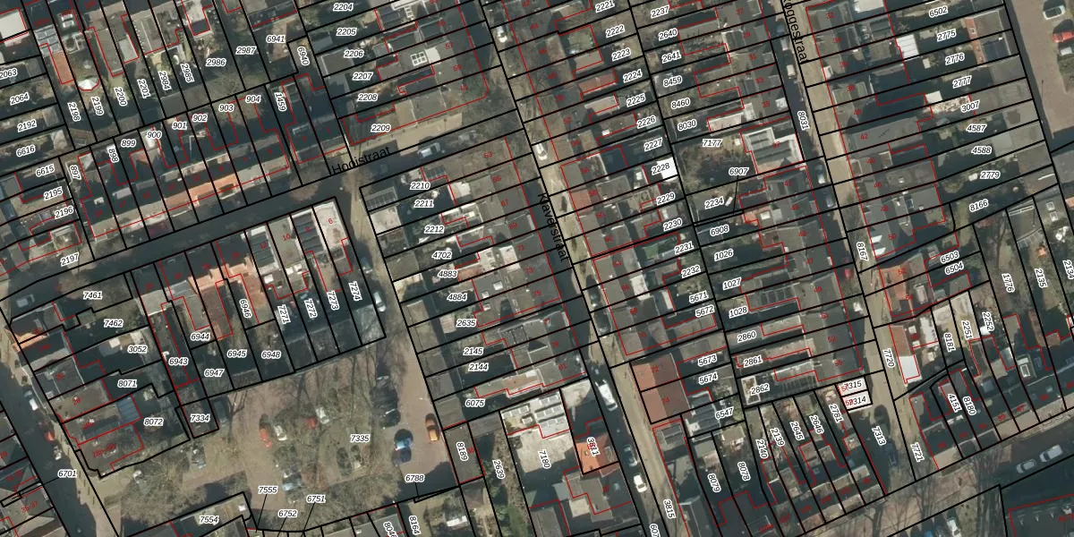 Gebruik de zoekbalk of klik op een perceel voor informatie over de adressen binnen dit perceel.