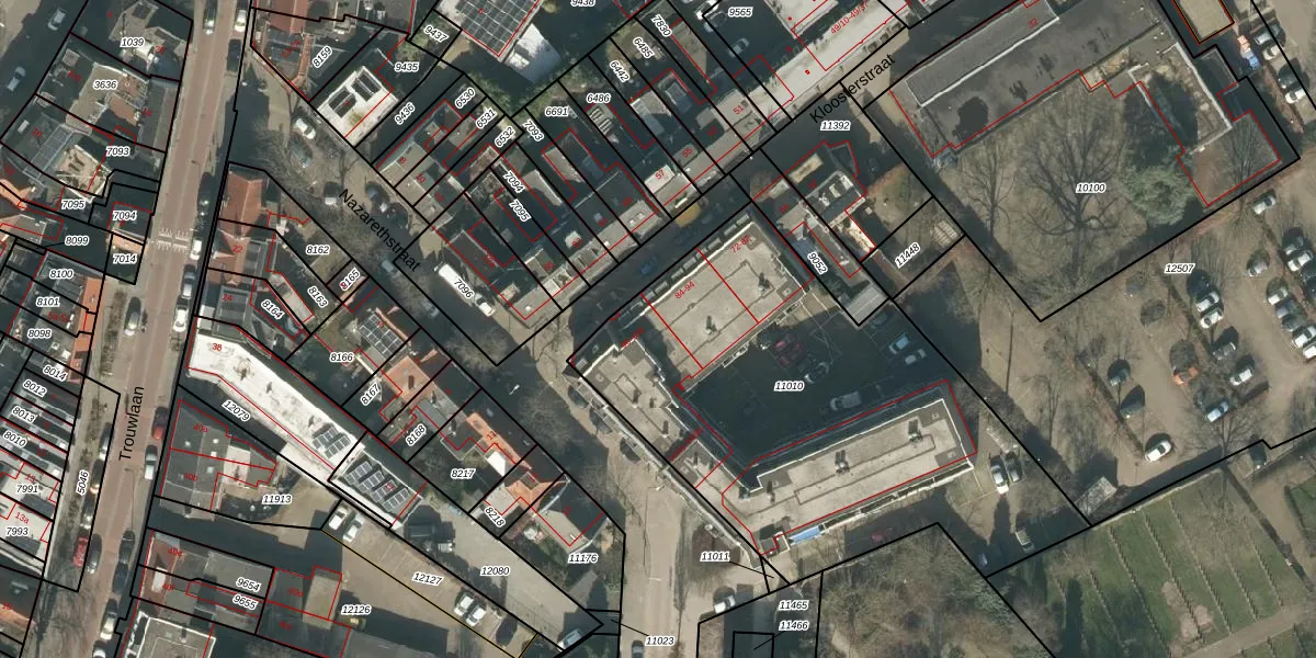 Kloosterstraat 100 is gelegen op kadastraal perceel TBG01M11010. Deze kadastrale aanduiding is uniek en wordt gebruikt door het Kadaster om eigendomsrechten en andere zakelijke rechten vast te leggen. Het perceel maakt onderdeel uit van de kadastrale gemeente Tilburg.