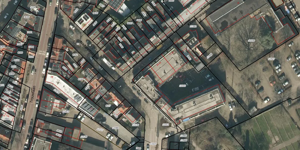 Kloosterstraat 102 is gelegen op kadastraal perceel TBG01M11010. Deze kadastrale aanduiding is uniek en wordt gebruikt door het Kadaster om eigendomsrechten en andere zakelijke rechten vast te leggen. Het perceel maakt onderdeel uit van de kadastrale gemeente Tilburg.