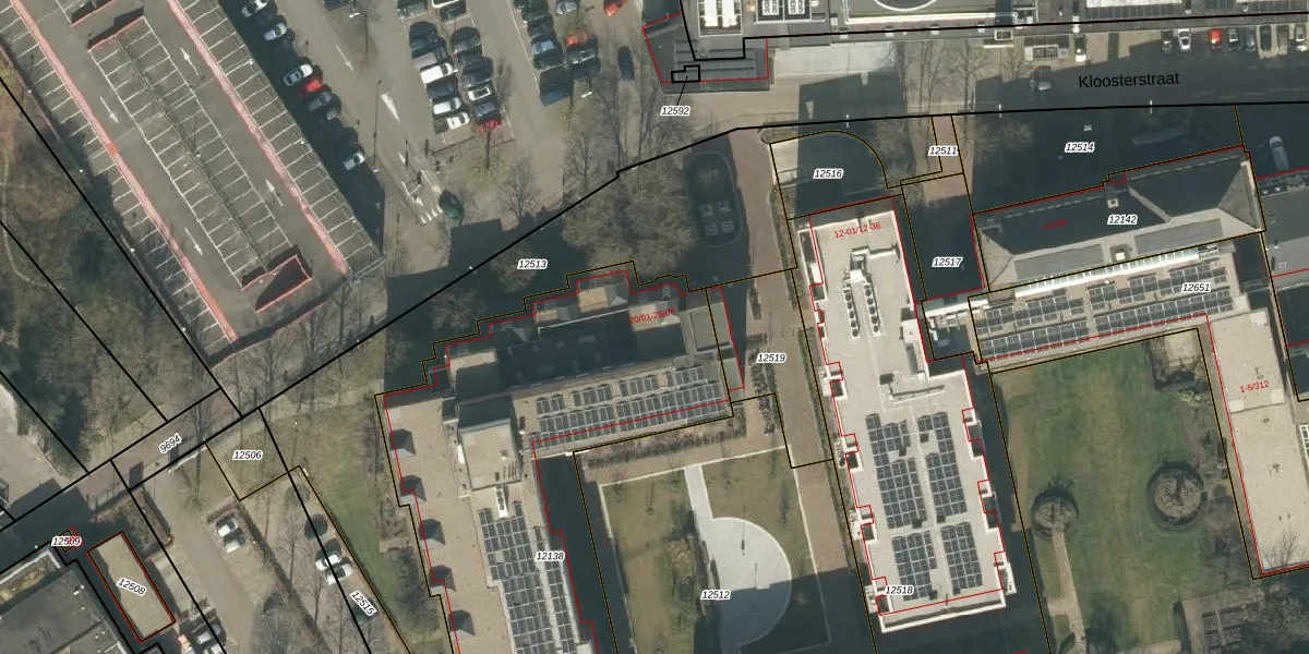 Het perceel waarop Kloosterstraat 22-26 staat heeft een oppervlakte van 2808 m². Dit is een zeer groot perceel. De perceeloppervlakte wordt geregistreerd door het Kadaster. Gedetailleerde informatie over de maten van dit perceel kunt u vinden in het rapport Kadastrale kaart met maatvoering van Kloosterstraat 22-26.