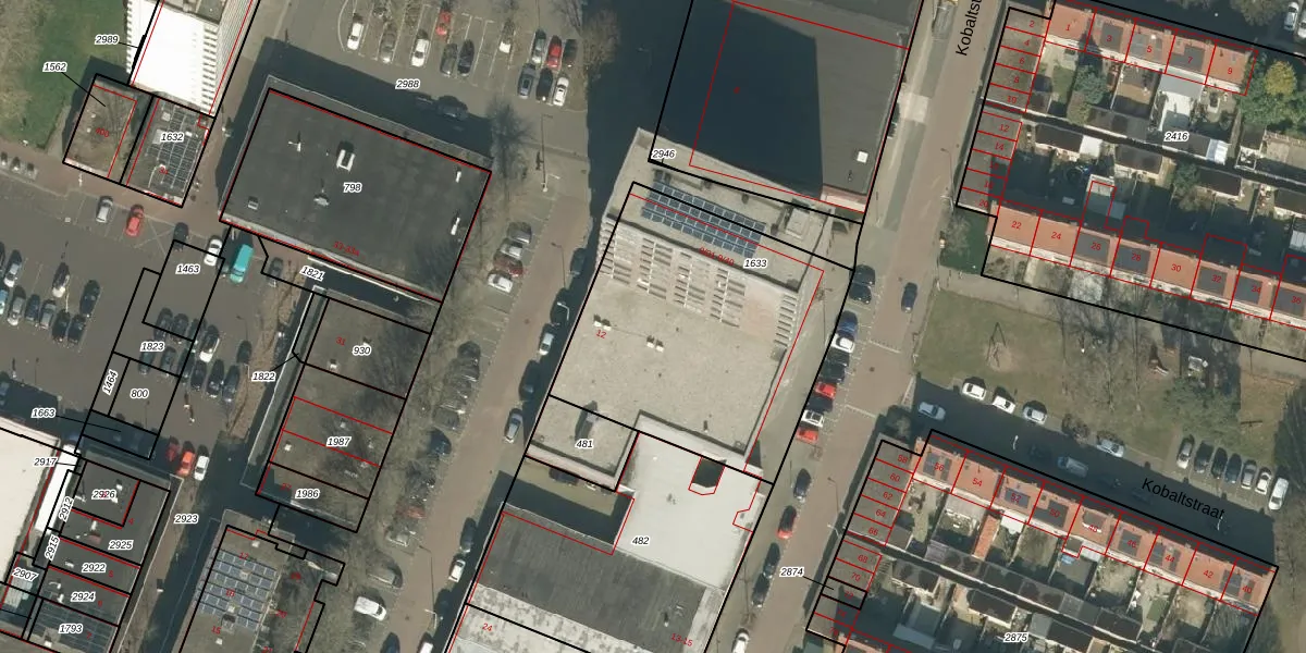 Kobaltstraat 9-34 is gelegen op kadastraal perceel TBG01AD1633. Deze kadastrale aanduiding is uniek en wordt gebruikt door het Kadaster om eigendomsrechten en andere zakelijke rechten vast te leggen. Het perceel maakt onderdeel uit van de kadastrale gemeente Tilburg.