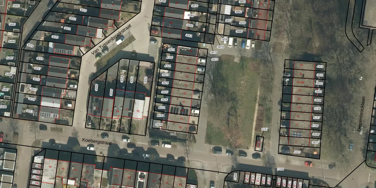 Koebergstraat 55 is gelegen op kadastraal perceel TBG01S3925. Deze kadastrale aanduiding is uniek en wordt gebruikt door het Kadaster om eigendomsrechten en andere zakelijke rechten vast te leggen. Het perceel maakt onderdeel uit van de kadastrale gemeente Tilburg.