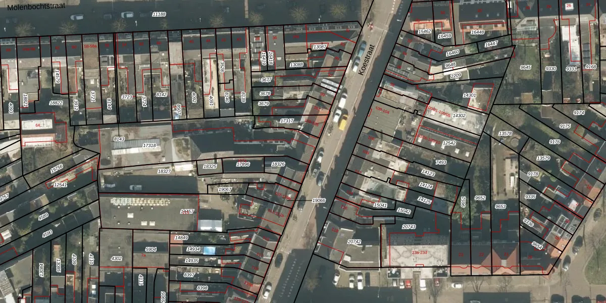 Het perceel waarop Koestraat 105 staat heeft een oppervlakte van 986 m². Dit is een groot perceel. De perceeloppervlakte wordt geregistreerd door het Kadaster. Gedetailleerde informatie over de maten van dit perceel kunt u vinden in het rapport Kadastrale kaart met maatvoering van Koestraat 105.
