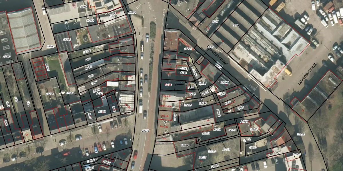 Het adres is gelegen op perceel 2166 in de sectie N en de kadastrale gemeente Tilburg. De kadastrale aanduiding is aldus TBG01-N-2166. Het perceel is 68 m² groot. Dat is kleiner dan de gemiddelde perceeloppervlakte in Tilburg, dat op 1264,36 m² ligt. Het grootste perceel in de kadastrale gemeente is 87,4 ha. Het kleinste perceel heeft een oppervlakte van 0 m². Op het perceel zijn 3 adressen aanwezig. De laatste wijziging in het de Basisregistratie Kadaster (BRK) was op 24-04-2003.