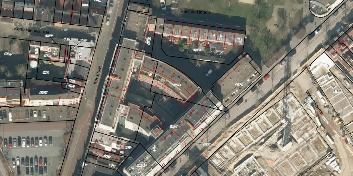 Het perceel waarop Koestraat 220 staat heeft een oppervlakte van 479 m². Dit is een groot perceel. De perceeloppervlakte wordt geregistreerd door het Kadaster. Gedetailleerde informatie over de maten van dit perceel kunt u vinden in het rapport Kadastrale kaart met maatvoering van Koestraat 220.