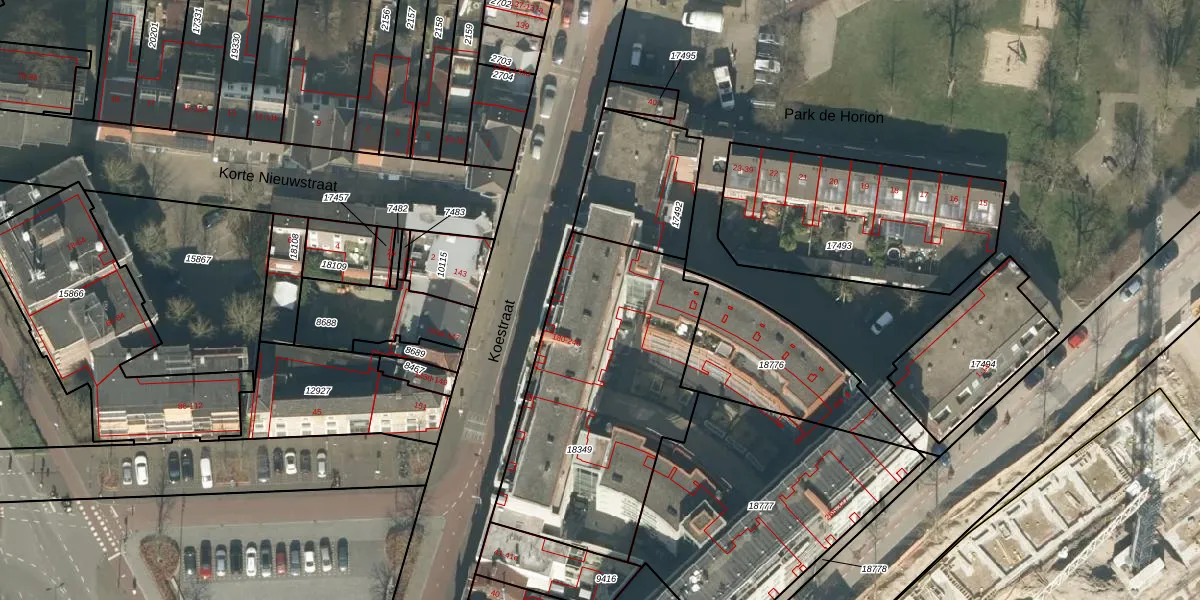 Het perceel waarop Koestraat 224 staat heeft een oppervlakte van 1237 m². Dit is een zeer groot perceel. De perceeloppervlakte wordt geregistreerd door het Kadaster. Gedetailleerde informatie over de maten van dit perceel kunt u vinden in het rapport Kadastrale kaart met maatvoering van Koestraat 224.