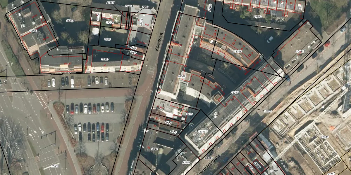 Het perceel waarop Koestraat 238 staat heeft een oppervlakte van 1237 m². Dit is een zeer groot perceel. De perceeloppervlakte wordt geregistreerd door het Kadaster. Gedetailleerde informatie over de maten van dit perceel kunt u vinden in het rapport Kadastrale kaart met maatvoering van Koestraat 238.