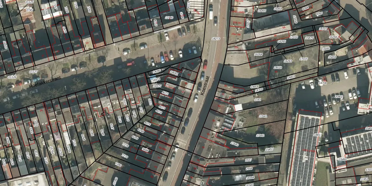 Koestraat 47 is gelegen op kadastraal perceel TBG01N16975. Deze kadastrale aanduiding is uniek en wordt gebruikt door het Kadaster om eigendomsrechten en andere zakelijke rechten vast te leggen. Het perceel maakt onderdeel uit van de kadastrale gemeente Tilburg.