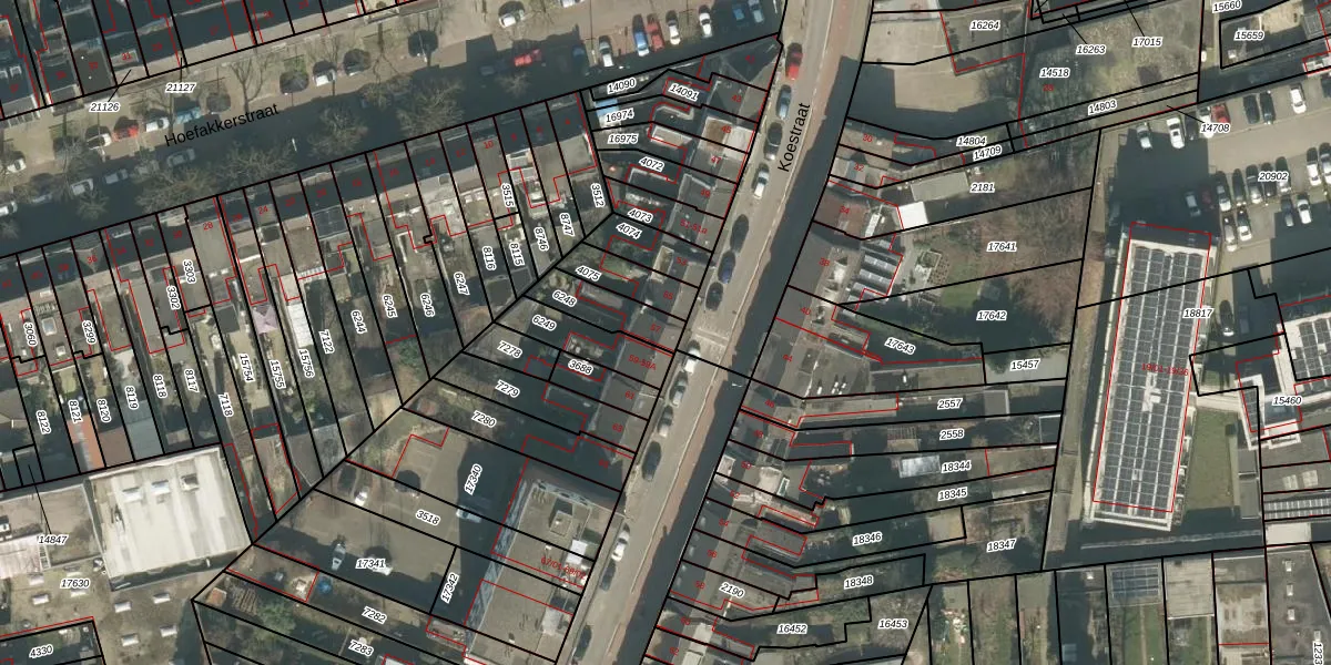 Het perceel waarop Koestraat 57 staat heeft een oppervlakte van 125 m². Dit is een middelgroot perceel. De perceeloppervlakte wordt geregistreerd door het Kadaster. Gedetailleerde informatie over de maten van dit perceel kunt u vinden in het rapport Kadastrale kaart met maatvoering van Koestraat 57.