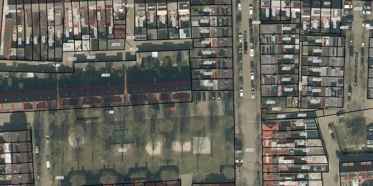 Het perceel waarop Koggeplein 35 staat heeft een oppervlakte van 2570 m². Dit is een zeer groot perceel. De perceeloppervlakte wordt geregistreerd door het Kadaster. Gedetailleerde informatie over de maten van dit perceel kunt u vinden in het rapport Kadastrale kaart met maatvoering van Koggeplein 35.