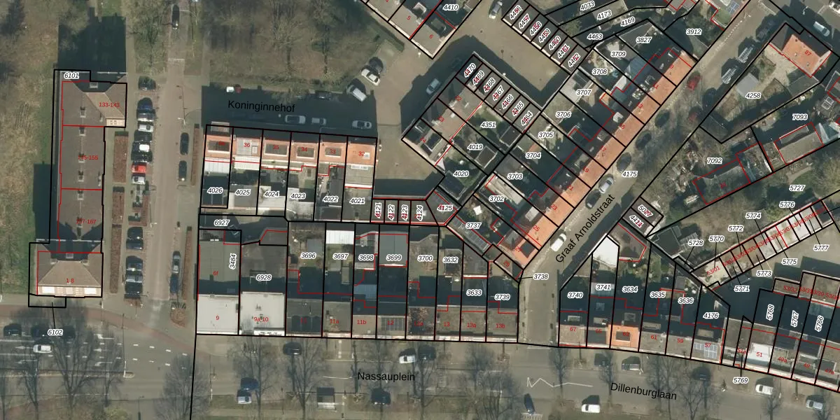 Het perceel waarop Koninginnehof 27 staat heeft een oppervlakte van 30 m². Dit is een klein perceel. De perceeloppervlakte wordt geregistreerd door het Kadaster. Gedetailleerde informatie over de maten van dit perceel kunt u vinden in het rapport Kadastrale kaart met maatvoering van Koninginnehof 27.