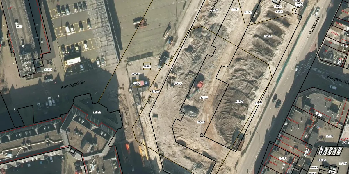 Het perceel waarop Koningsplein 229 staat heeft een oppervlakte van 1403 m². Dit is een zeer groot perceel. De perceeloppervlakte wordt geregistreerd door het Kadaster. Gedetailleerde informatie over de maten van dit perceel kunt u vinden in het rapport Kadastrale kaart met maatvoering van Koningsplein 229.
