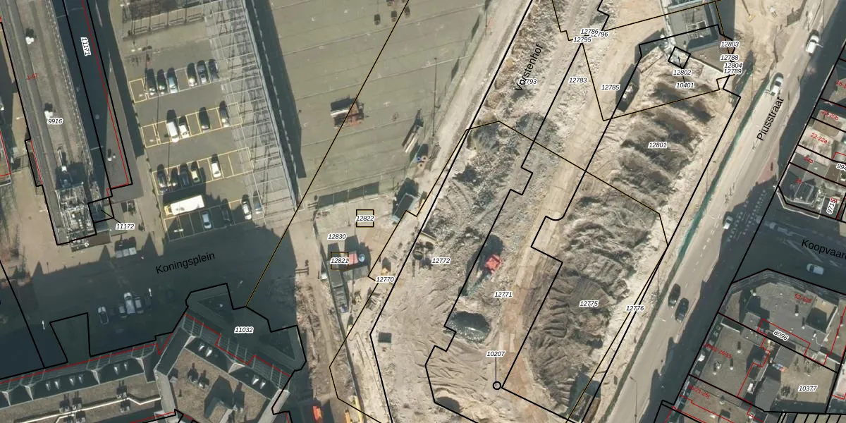 Het perceel waarop Koningsplein 236-d staat heeft een oppervlakte van 386 m². Dit is een groot perceel. De perceeloppervlakte wordt geregistreerd door het Kadaster. Gedetailleerde informatie over de maten van dit perceel kunt u vinden in het rapport Kadastrale kaart met maatvoering van Koningsplein 236-d.