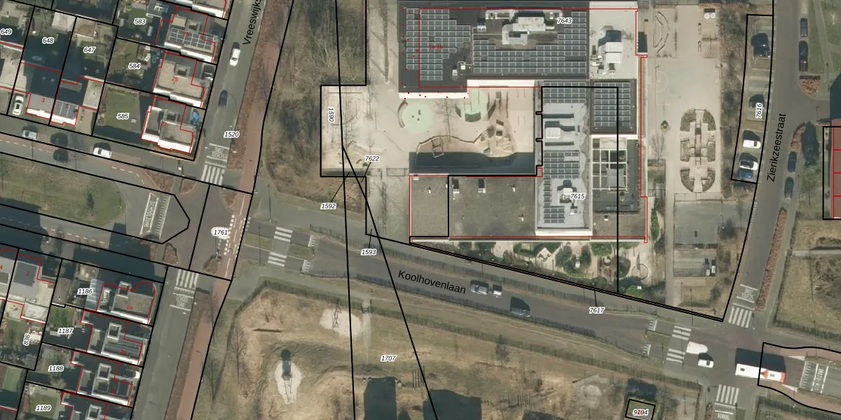 Het perceel waarop Koolhovenlaan 1-b staat heeft een oppervlakte van 5722 m². Dit is een zeer groot perceel. De perceeloppervlakte wordt geregistreerd door het Kadaster. Gedetailleerde informatie over de maten van dit perceel kunt u vinden in het rapport Kadastrale kaart met maatvoering van Koolhovenlaan 1-b.