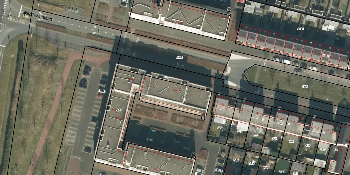 Het perceel waarop Koolhovenlaan 128 staat heeft een oppervlakte van 1985 m². Dit is een zeer groot perceel. De perceeloppervlakte wordt geregistreerd door het Kadaster. Gedetailleerde informatie over de maten van dit perceel kunt u vinden in het rapport Kadastrale kaart met maatvoering van Koolhovenlaan 128.