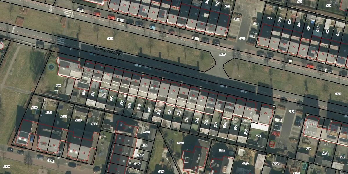 Het perceel waarop Koolhovenlaan 42 staat heeft een oppervlakte van 156 m². Dit is een middelgroot perceel. De perceeloppervlakte wordt geregistreerd door het Kadaster. Gedetailleerde informatie over de maten van dit perceel kunt u vinden in het rapport Kadastrale kaart met maatvoering van Koolhovenlaan 42.