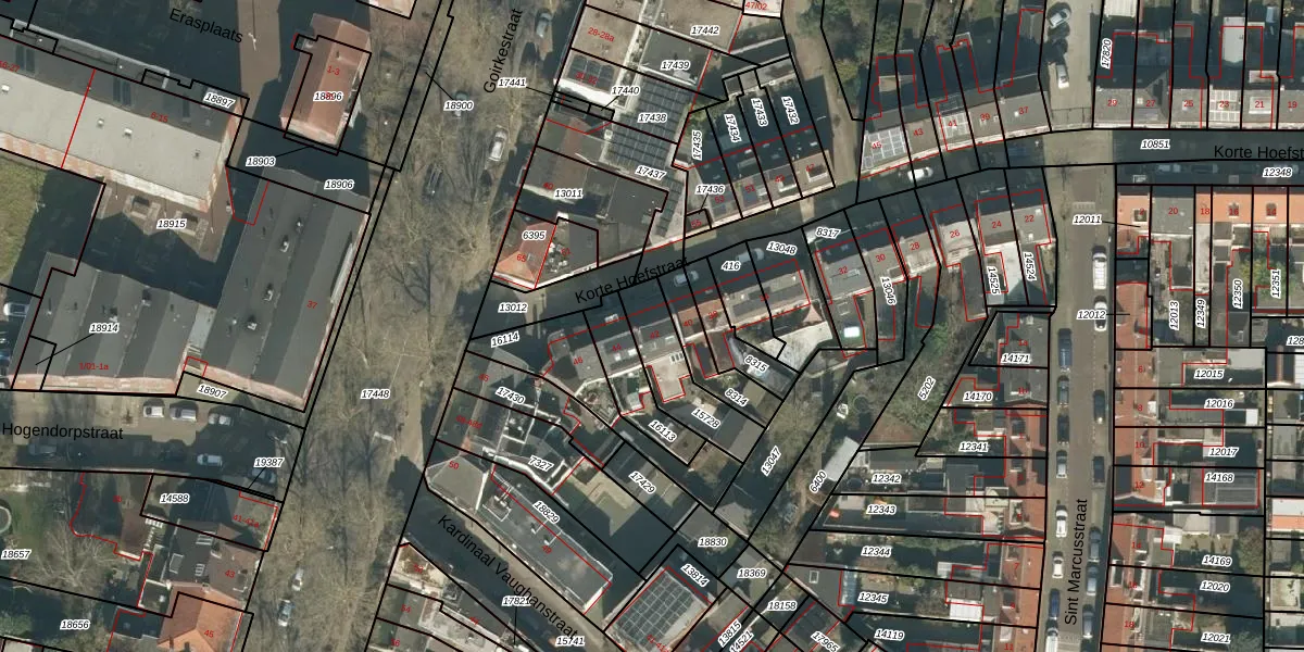 Korte Hoefstraat 42 is gelegen op kadastraal perceel TBG01N15728. Deze kadastrale aanduiding is uniek en wordt gebruikt door het Kadaster om eigendomsrechten en andere zakelijke rechten vast te leggen. Het perceel maakt onderdeel uit van de kadastrale gemeente Tilburg.
