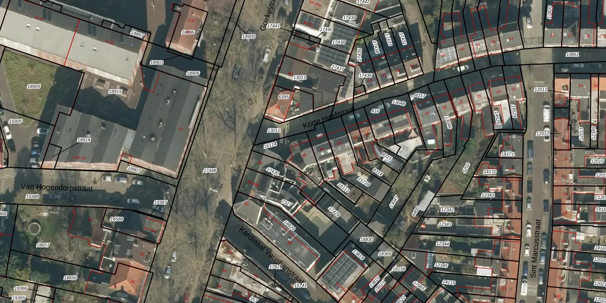 Korte Hoefstraat 46 is gelegen op kadastraal perceel TBG01N16114. Deze kadastrale aanduiding is uniek en wordt gebruikt door het Kadaster om eigendomsrechten en andere zakelijke rechten vast te leggen. Het perceel maakt onderdeel uit van de kadastrale gemeente Tilburg.