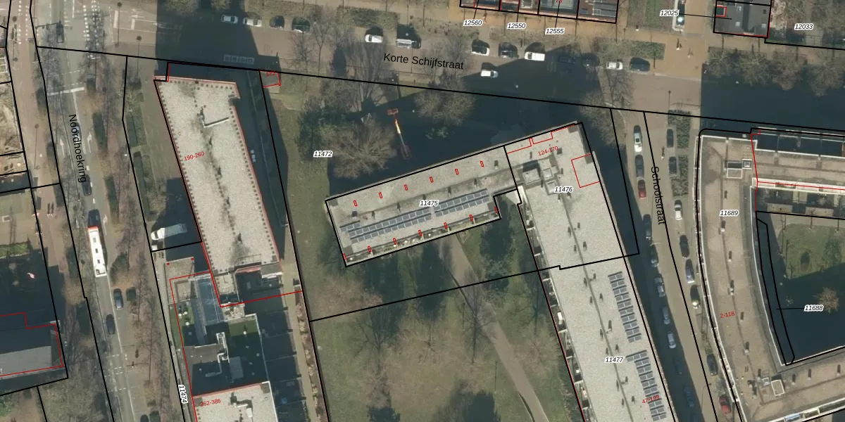 Het perceel waarop Korte Schijfstraat 166 staat heeft een oppervlakte van 690 m². Dit is een groot perceel. De perceeloppervlakte wordt geregistreerd door het Kadaster. Gedetailleerde informatie over de maten van dit perceel kunt u vinden in het rapport Kadastrale kaart met maatvoering van Korte Schijfstraat 166.