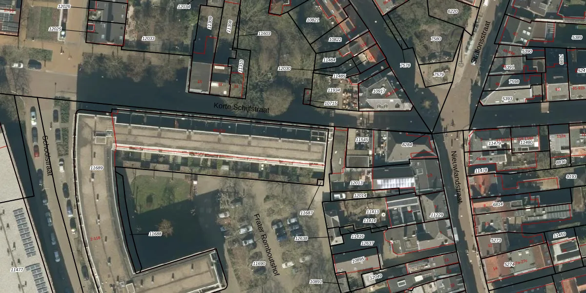 Het perceel waarop Korte Schijfstraat 72 staat heeft een oppervlakte van 2716 m². Dit is een zeer groot perceel. De perceeloppervlakte wordt geregistreerd door het Kadaster. Gedetailleerde informatie over de maten van dit perceel kunt u vinden in het rapport Kadastrale kaart met maatvoering van Korte Schijfstraat 72.