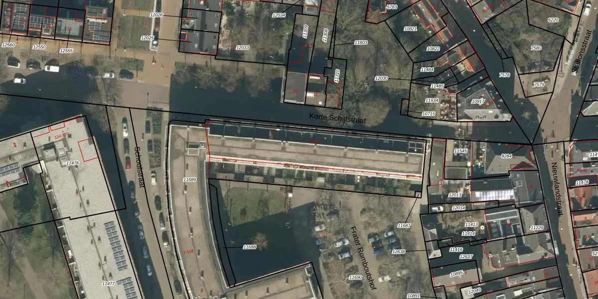 Het perceel waarop Korte Schijfstraat 84 staat heeft een oppervlakte van 2716 m². Dit is een zeer groot perceel. De perceeloppervlakte wordt geregistreerd door het Kadaster. Gedetailleerde informatie over de maten van dit perceel kunt u vinden in het rapport Kadastrale kaart met maatvoering van Korte Schijfstraat 84.