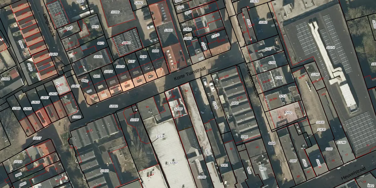Het perceel waarop Korte Tuinstraat 6-07 staat heeft een oppervlakte van 428 m². Dit is een groot perceel. De perceeloppervlakte wordt geregistreerd door het Kadaster. Gedetailleerde informatie over de maten van dit perceel kunt u vinden in het rapport Kadastrale kaart met maatvoering van Korte Tuinstraat 6-07.