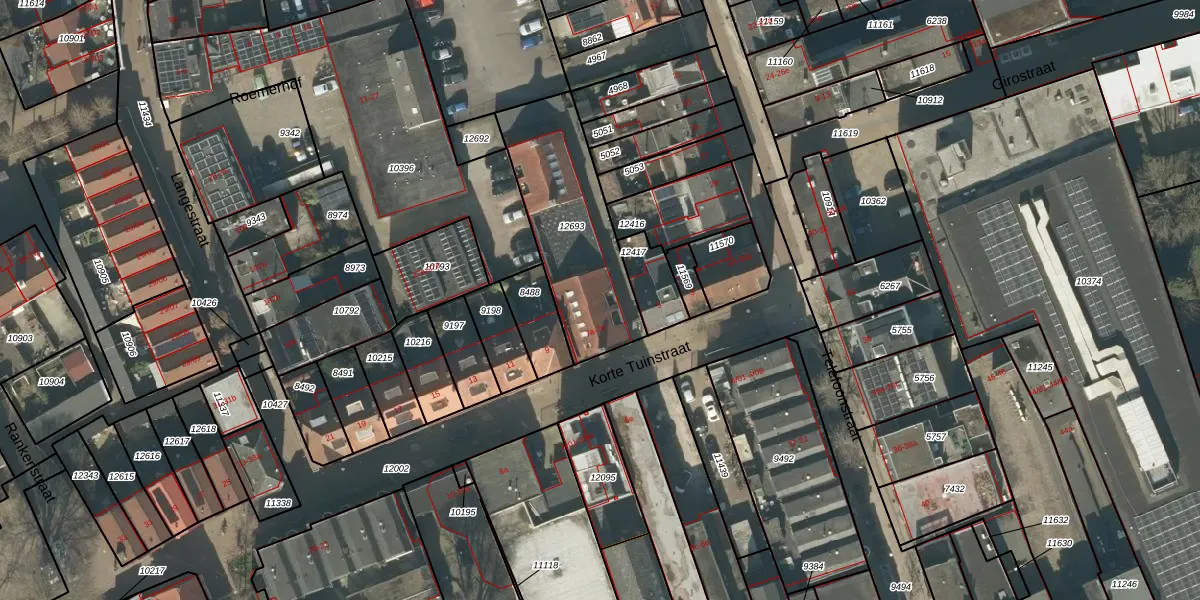 Korte Tuinstraat 7-b is gelegen op kadastraal perceel TBG01M12693. Deze kadastrale aanduiding is uniek en wordt gebruikt door het Kadaster om eigendomsrechten en andere zakelijke rechten vast te leggen. Het perceel maakt onderdeel uit van de kadastrale gemeente Tilburg.