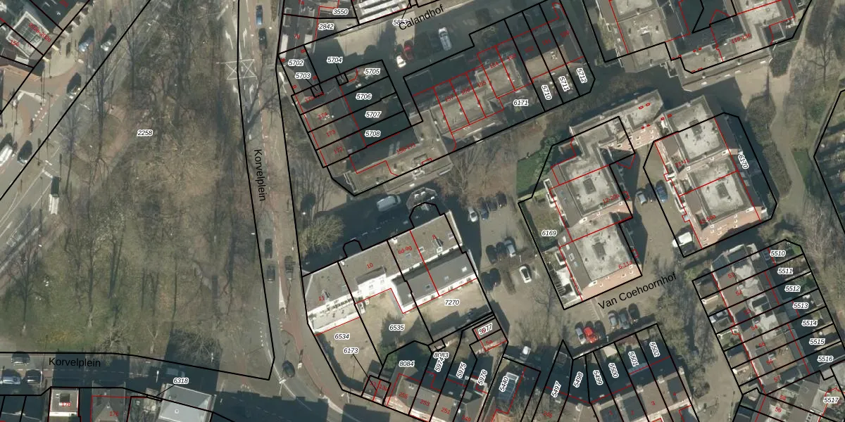 Korvelplein 10 is gelegen op kadastraal perceel TBG01Q7270. Deze kadastrale aanduiding is uniek en wordt gebruikt door het Kadaster om eigendomsrechten en andere zakelijke rechten vast te leggen. Het perceel maakt onderdeel uit van de kadastrale gemeente Tilburg.