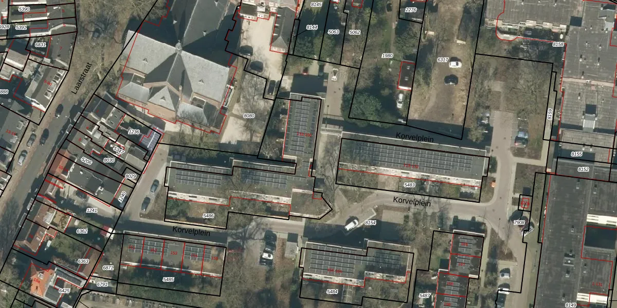 Het perceel waarop Korvelplein 135 staat heeft een oppervlakte van 1142 m². Dit is een zeer groot perceel. De perceeloppervlakte wordt geregistreerd door het Kadaster. Gedetailleerde informatie over de maten van dit perceel kunt u vinden in het rapport Kadastrale kaart met maatvoering van Korvelplein 135.