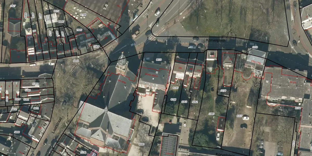 Het perceel waarop Korvelplein 182-07 staat heeft een oppervlakte van 910 m². Dit is een groot perceel. De perceeloppervlakte wordt geregistreerd door het Kadaster. Gedetailleerde informatie over de maten van dit perceel kunt u vinden in het rapport Kadastrale kaart met maatvoering van Korvelplein 182-07.