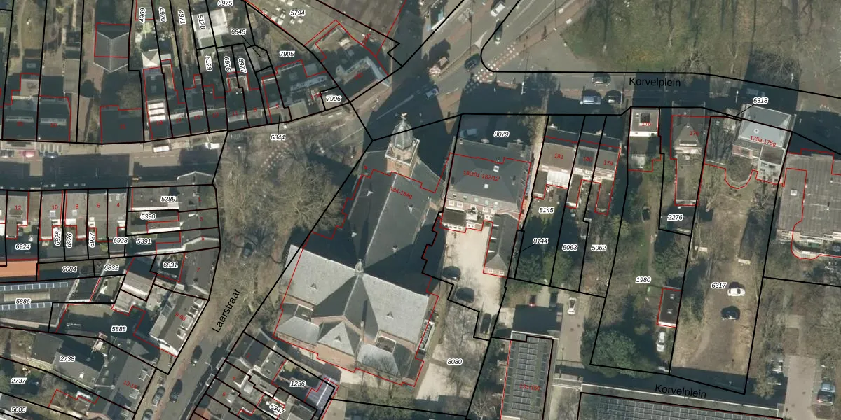 Korvelplein 184-c is gelegen op kadastraal perceel TBG01Q8080. Deze kadastrale aanduiding is uniek en wordt gebruikt door het Kadaster om eigendomsrechten en andere zakelijke rechten vast te leggen. Het perceel maakt onderdeel uit van de kadastrale gemeente Tilburg.
