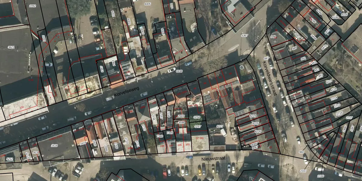 Korvelseweg 102 is gelegen op kadastraal perceel TBG01Q2669. Deze kadastrale aanduiding is uniek en wordt gebruikt door het Kadaster om eigendomsrechten en andere zakelijke rechten vast te leggen. Het perceel maakt onderdeel uit van de kadastrale gemeente Tilburg.