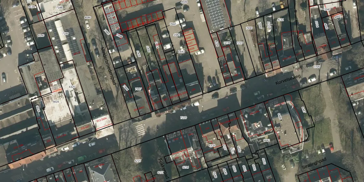 Korvelseweg 201-a is gelegen op kadastraal perceel TBG01Q7643. Deze kadastrale aanduiding is uniek en wordt gebruikt door het Kadaster om eigendomsrechten en andere zakelijke rechten vast te leggen. Het perceel maakt onderdeel uit van de kadastrale gemeente Tilburg.