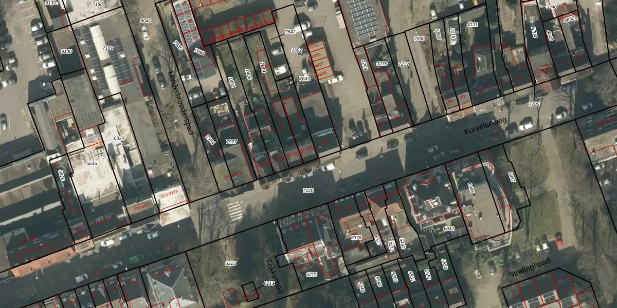 Korvelseweg 201 is gelegen op kadastraal perceel TBG01Q7643. Deze kadastrale aanduiding is uniek en wordt gebruikt door het Kadaster om eigendomsrechten en andere zakelijke rechten vast te leggen. Het perceel maakt onderdeel uit van de kadastrale gemeente Tilburg.