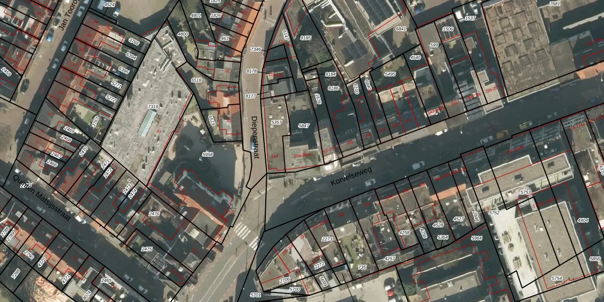 Korvelseweg 261 is gelegen op kadastraal perceel TBG01Q5847. Deze kadastrale aanduiding is uniek en wordt gebruikt door het Kadaster om eigendomsrechten en andere zakelijke rechten vast te leggen. Het perceel maakt onderdeel uit van de kadastrale gemeente Tilburg.